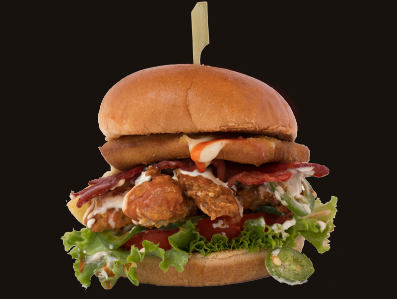*Spicy* Crispy fried chicken fillet brushed with home-made spiced oil, jalapenos, pickles and signature garlic mayo sauce.