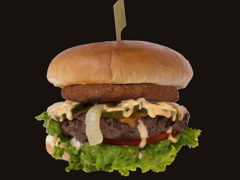 Beef patty topped with cheddar cheese, lettuce, tomatoes, pickles, and our signature secret Alley sauce.